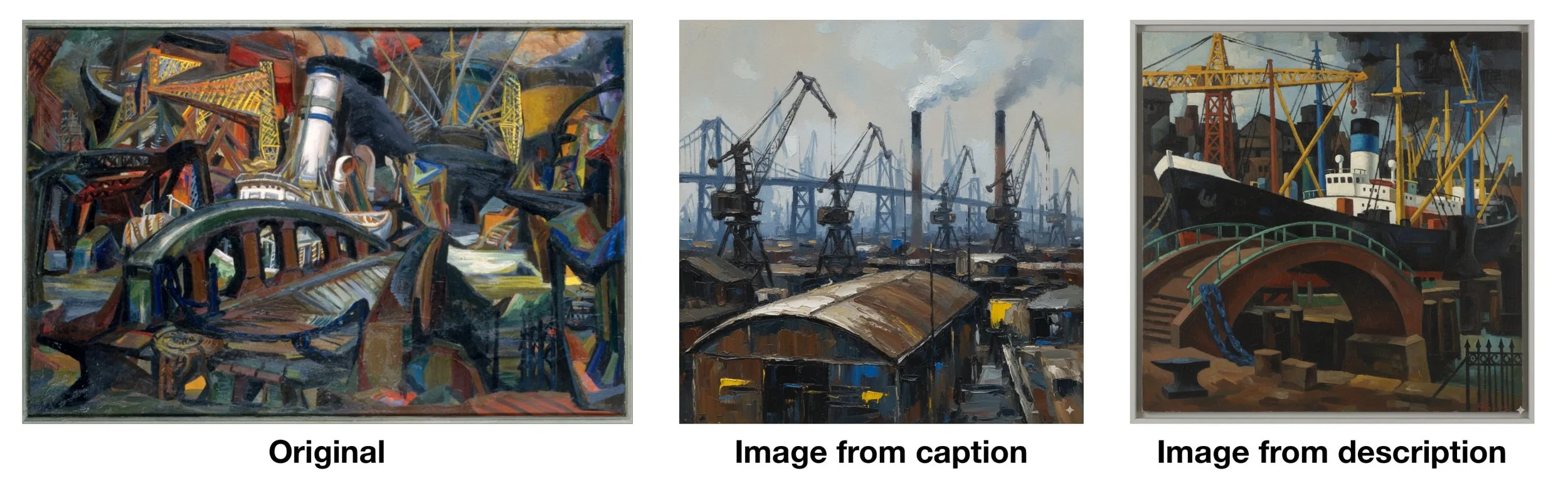 For the Museum Semantic Search prototype I used a multimodal LLM to generate visual descriptions of artwork images to improve semantic search with text embeddings. These generated descriptions can be treated as an extreme form of non-reversible lossy compression, turning a digital image into a compact text.